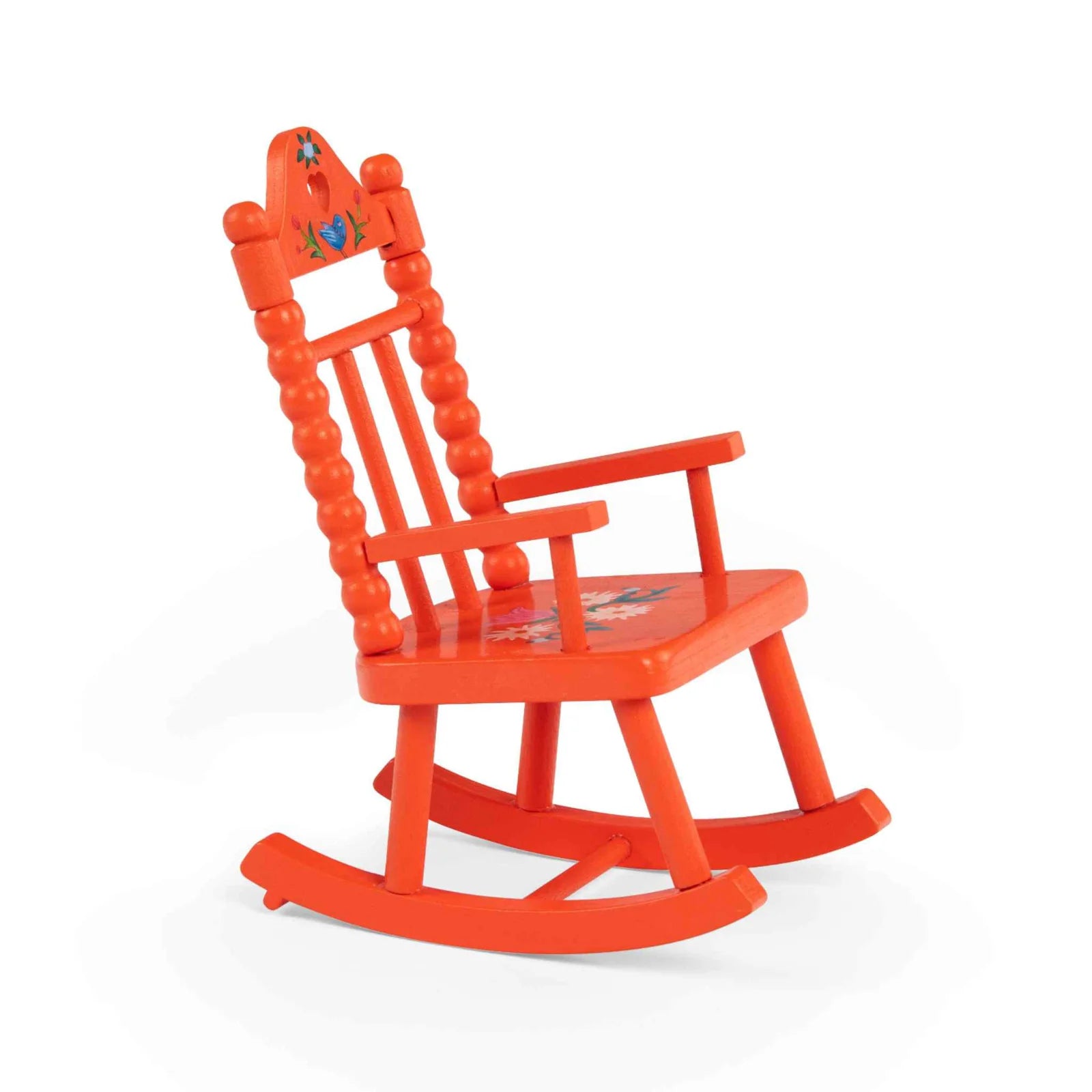 Léon put on his slippers and glasses to read the newspaper. Pop, a log in the fireplace: how nice to be home by the fire! Contents: rocking chair, wood-burning stove, 3 logs, rug. Dolls sold separately.